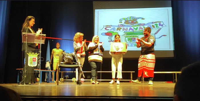 | Premio de la ganadora del concurso escolar del cartel anunciador del Carnaval, Cristina Suárez, alumna del colegio Santa Teresa |